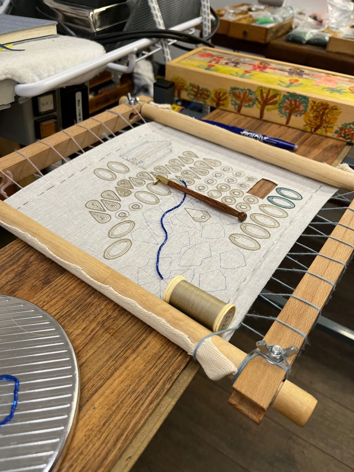 Cette artiste aux talents multiples n’a pourtant pas terminé de se former. Elle qui est constamment à la recherche de nouvelles techniques, apprend au fur et à mesure des procédés. Elle confie avoir suivi un cours sur l’utilisation de la cannetille, un fil d’argent ou d’or très fin. Ce travail d’orfèvre, souvent manipulé dans la haute couture, nécessite un nombre d’heure incalculable (en tout cas pour moi qui suis une vraie impatiente…). Captivée par cette nouvelle façon de créer, Emuska ajoute une nouvelle forme de broderie dans son travail.